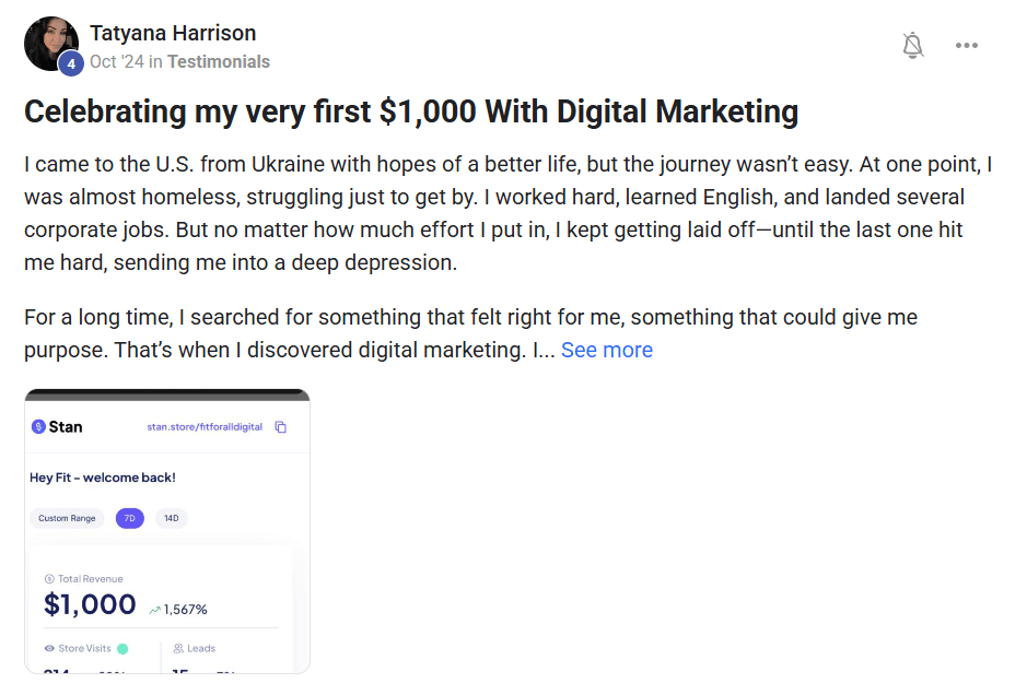 This course actually comes with its own community of 20,000+ people where you can ask questions & network. In addition to that, if you get the course with me, you will be added into my PRIVATE CHANNEL youll receive my personal phone number & an optional group chat with weekly calls! I want to see you become a success story!